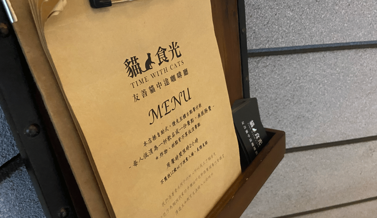 在電源的眼神中能夠感受到菜單的封面寫著"我們憑著愛毛孩子的初心所以成立了貓食光",每個生命都要受到愛戴和尊重,也是因為有著許多人背後默默的努力才讓貓咪們都能夠健康的長大。