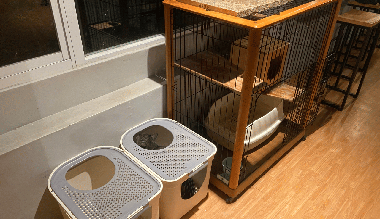 店裡很貼心地將玩樂區和休息區給分開來,徹底執行了貓咪的玩樂區、貓砂盆和飼料要分開放的概念。不過休息區旁的貓砂盆就會稍微比較擔心貓貓們有搶地盤的可能,但仔細研究了一下貓咪們似乎都很適應,而且其他地方也有貓砂盆,整體來說雖然貓很多不過空間配置的很舒適,也不會影響到用餐,很適合坐在這邊邊工作邊嚕貓。