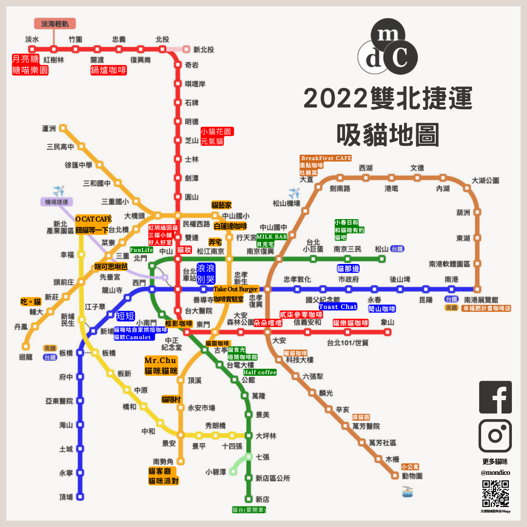 *本地圖為雙北捷運有貓咪的餐廳/咖啡廳,並非全是寵物友善餐廳喲!